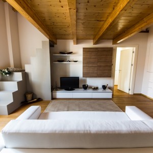 Le travi in legno del soffitto sono state lasciate a vista dopo un accurato intervento di restauro conservativo all’interno di una completa ristrutturazione effettuata utilizzando materiali di altissima qualitŕ (pavimenti in rovere, sanitari di design ecc.) con dotazioni tecnologiche di ottimo livello (aria condizionata, collegamento internet Wi-Fi, TV satellitare ecc.).